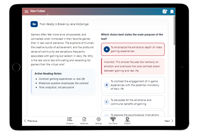 When the SAT shifted to a computer-based format, we adapted as well, transforming our work into a fully interactive eBook — while keeping our teaching philosophy unchanged.